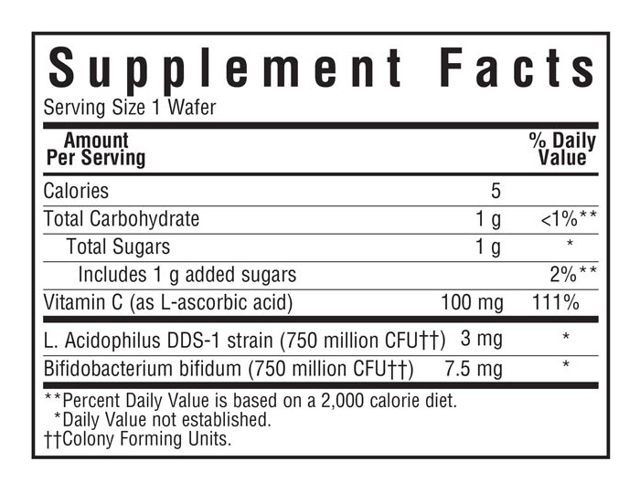 Each natural raspberry flavor chewable wafer provides over one billion viable microorganisms at the time of manufacturing that have been extensively researched for supporting the growth of friendly bacteria in the gastrointestinal tract to help support digestive health.