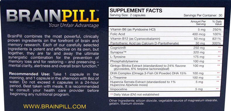 Your brain will love BrainPill! It's a memory-boosting formula of natural ingredients that have shown to increase cognitive skills, productivity and otherwise help folks perform under pressure.