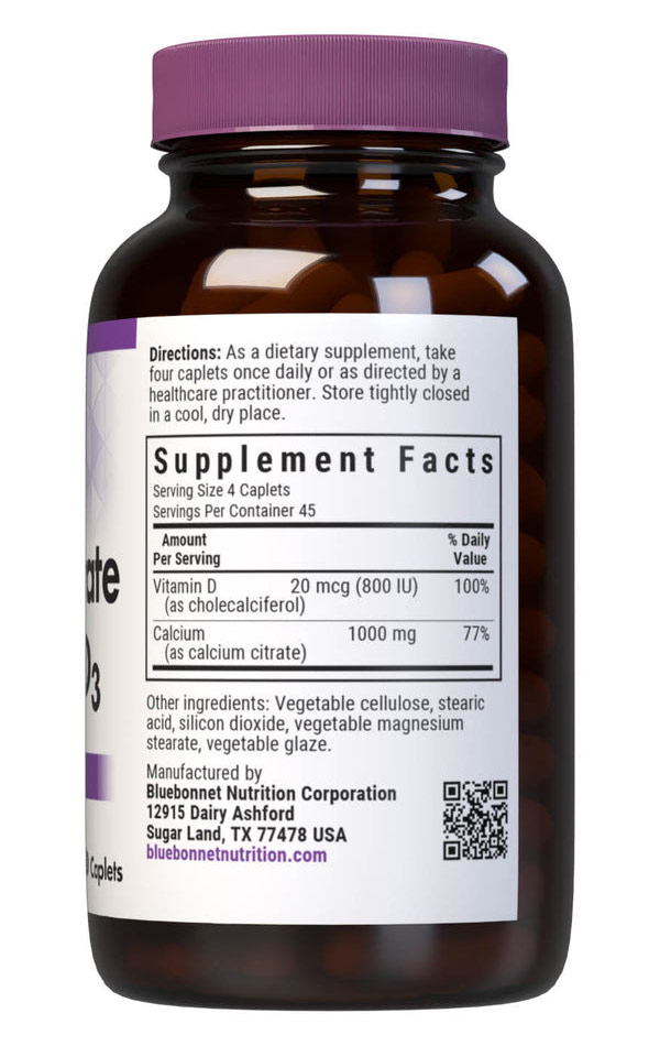 Bluebonnet's Calcium Citrate Plus Vitamin D3 Caplets provide calcium in a chelate of calcium citrate, plus natural form vitamin D3 (cholecalciferol) from lanolin. Available in easy-to-swallow caplets for maximum assimilation and absorption.