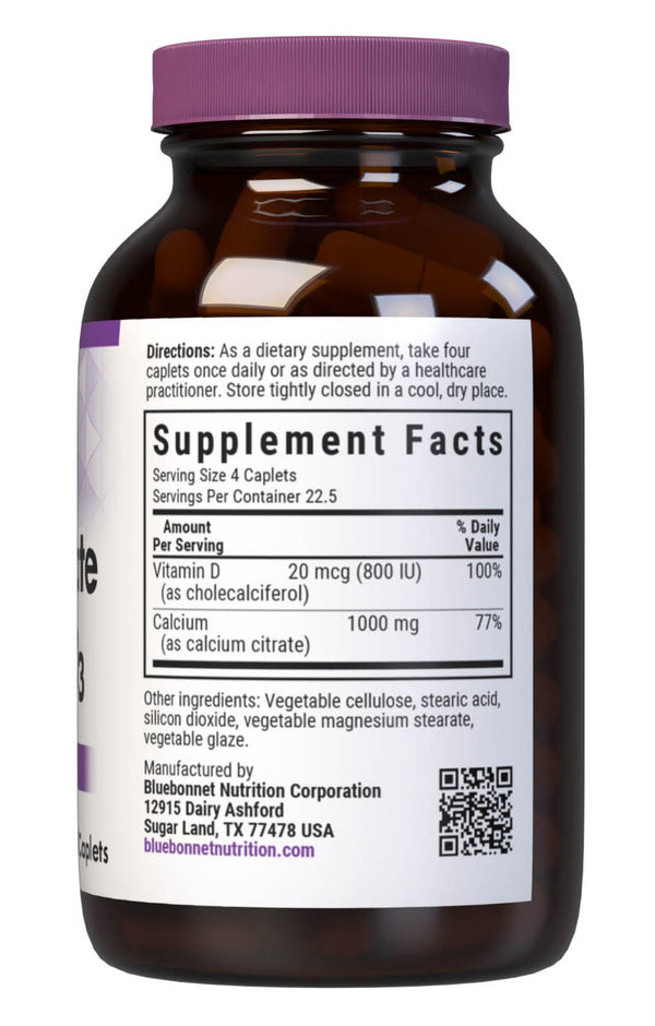 Bluebonnet's Calcium Citrate Plus Vitamin D3 Caplets provide calcium in a chelate of calcium citrate, plus natural form vitamin D3 (cholecalciferol) from lanolin. Available in easy-to-swallow caplets for maximum assimilation and absorption.
