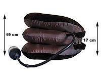 The Neck Traction Device relieves stiff neck muscle by stretching your neck muscles. Simply place the neck traction device around your neck and use the inflation pump to increase the pressure to a comfortable stretch. The air cushion of the neck traction device relaxes muscles and reduces pressure in the neck.