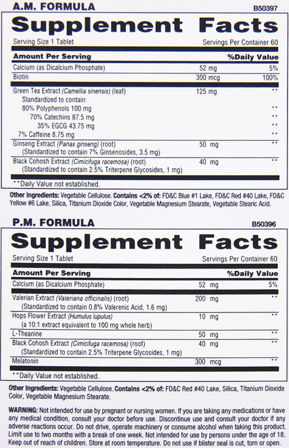 Notice: Individual results may vary. You should always consult with your physician before starting this product or any health-related program. Disclaimer: The product descriptions and the statements on this page are from manufacturers and/or distributors and have not been evaluated by VitaSprings or the FDA. These products are not intended to diagnose, treat, cure, or prevent any disease. VitaSprings does not imply any medical claims from the customer reviews on this Complete Menopause Support Complex, AM & PM Formulas product on this website. © Nature's Bounty