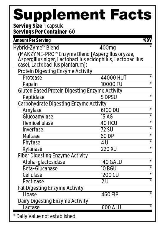 - Broad-spectrum plant-based and probiotic-based digestive enzymes.