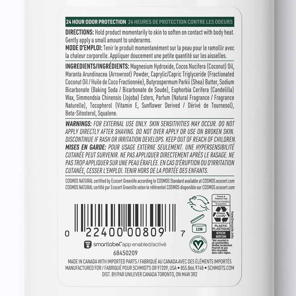 Schmidt's natural deodorant sticks help neutralize odor and keep you fresh with ingredients like shea butter, coconut oil, and essential oils.