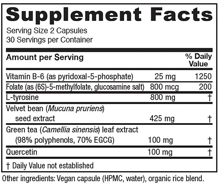 Dopamine Assist supports the body's natural production of dopamine, one of the body's primary catecholamines, and essential for balanced central nervous system function in the areas of motivation, attention, learning, mood and sleep.