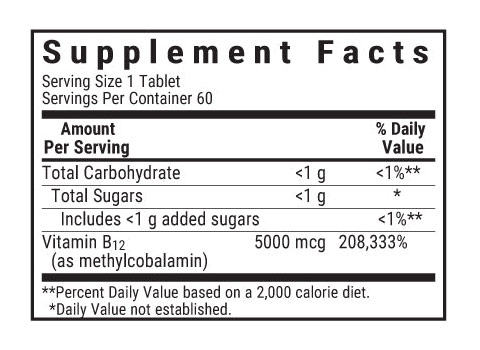 - 5000 mcg of the Active Form of Vitamin B12, Methylcobalamin.