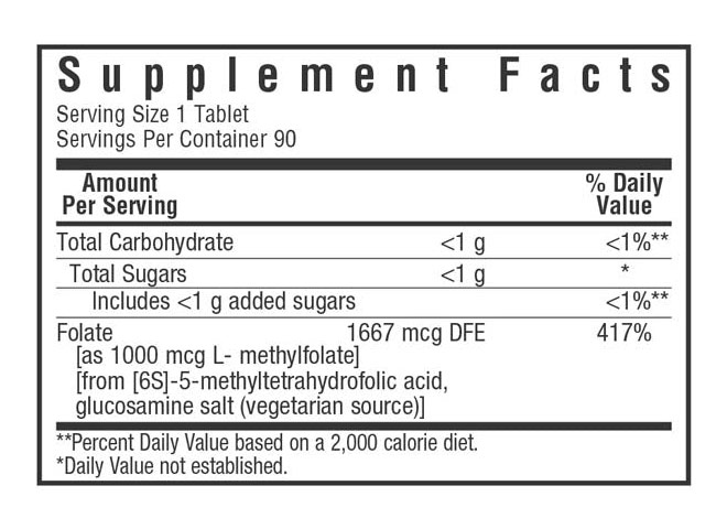 - Formulated with 1000 mcg of the Methylated Form of Folate, L-Methylfolate.