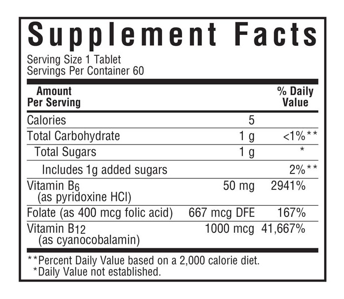 - Formulated with Vitamin B6, Vitamin B12 and Folic Acid.