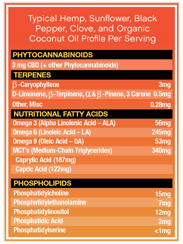 - 3 mg CBD per serving of two capsules / 90 mg CBD per bottle.