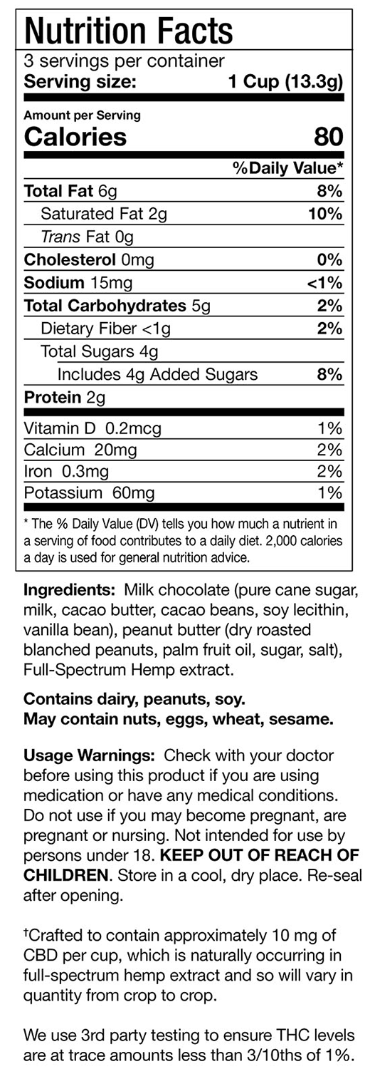 Featuring creamy peanut butter, melt-in-your-mouth milk chocolate, and our premium full-spectrum hemp extract containing CBD - these sweet and salty treats are a luxurious getaway on a stressful day.