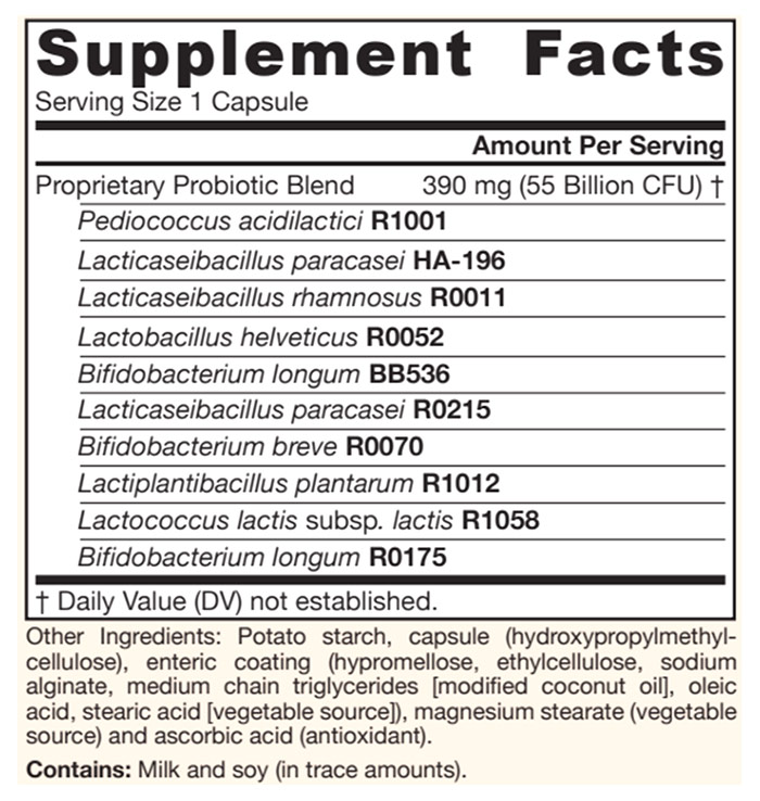 Our 10 strains of probiotic bacteria are delivered via proprietary enteric coated capsules (EnteroGuard) that protect the probiotic bacteria from stomach acid and deliver the potency of friendly bacteria needed to support a healthy gut.