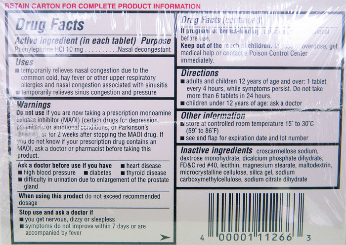 Phenylephrine HCl 10 mg -- Nasal decongestant
