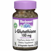 Bluebonnet's L-Glutathione 100 mg Capsules provide free-form L-glutathione, in easy-to-swallow vegetable capsules for maximum assimilation and absorption.