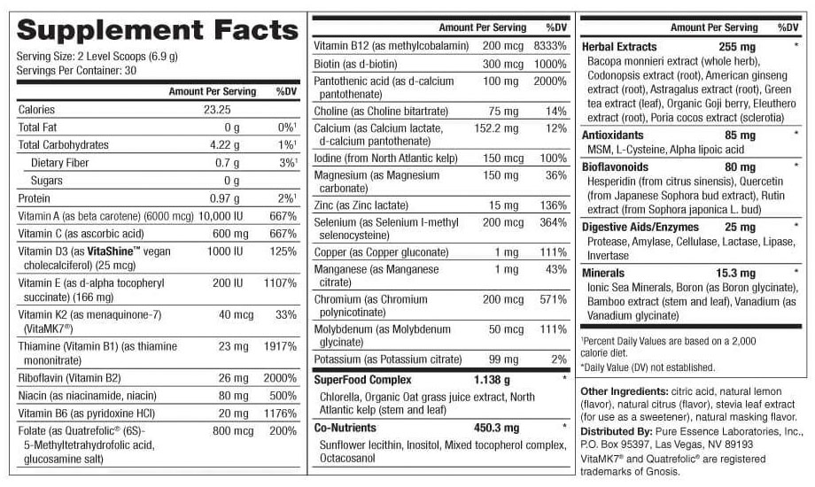 Notice: Individual results may vary. You should always consult with your physician before starting this product or any health-related program. Disclaimer: The product descriptions and the statements on this page are from manufacturers and/or distributors and have not been evaluated by VitaSprings or the FDA. These products are not intended to diagnose, treat, cure, or prevent any disease. VitaSprings does not imply any medical claims from the customer reviews on this LifeEssence Powder, Multivitamin & Mineral Supplement product on this website. © Pure Essence Labs