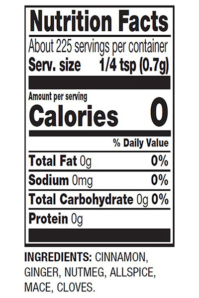 - Rich blend of spices including cinnamon, ginger and nutmeg.