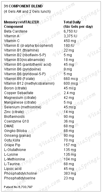 Memory reVITALIZER Ingredients