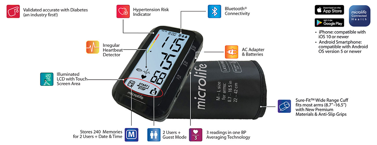 BLUETOOTH CONNECTIVITY & FREE MICROLIFE HEALTH APP
