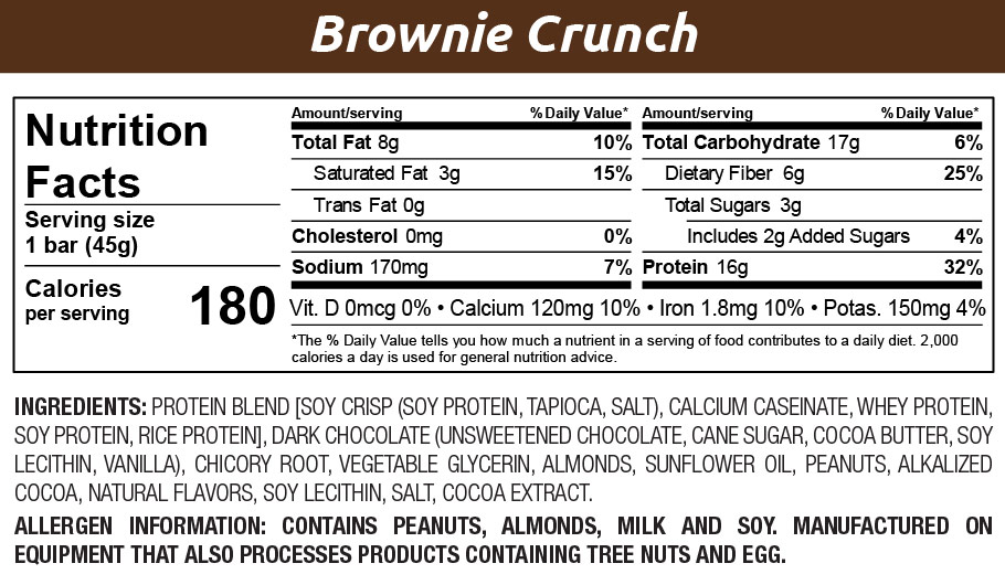 Craving those homemade chewy brownies but don't want the sugar? NuGo Slim Brownie Crunch combines the decadent taste of fresh-baked brownies with a great crunch from crushed almonds. This real dark chocolate coated bar has only 3g sugar, 16g protein, and is gluten free. Now you can satisfy your brownie cravings whenever they hit - no oven required!
