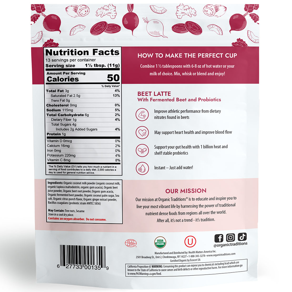Organic Traditions Beet Latte with Fermented Beets and Probiotics