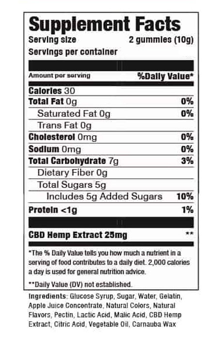- 25 mg of Broad Spectrum CBD Per Serving.