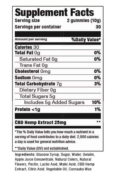 - 25 mg of Broad Spectrum CBD Per Serving.