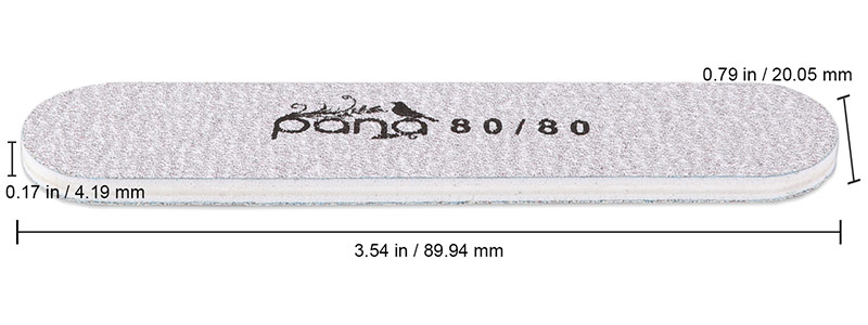 PANA nail files come in two different sizes and a variety of colors. The difference between the two is not hard to tell, but the durability and highest grade of emery boards stay the same.