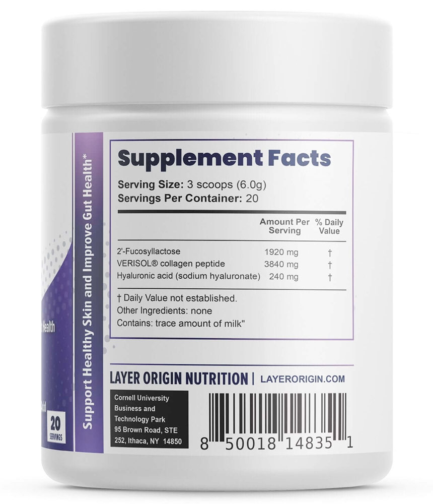 - With 2'-Fucosyllactose, Collagen Peptides, Hyaluronic Acid.