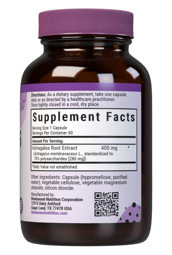 Bluebonnet's Standardized Astragalus Root Extract Capsules provide a standardized extract of polysaccharides, the most researched active constituents found in astragalus root. A clean and gentle water-based extraction method is employed to capture and preserve astragalus' most valuable components. Available in easy-to-swallow vegetable derived capsules for maximum assimilation/absorption and for a truly vegetarian/vegan formula.