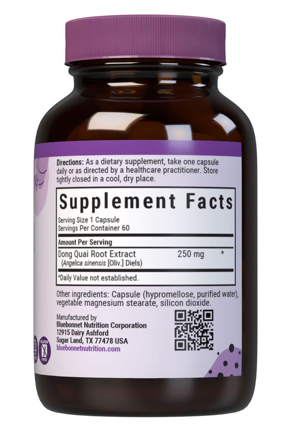 Bluebonnet's Standardized Dong Quai Root Extract Capsules provide a standardized extract of ligustilides, the most researched active constituents found in dong quai root. A clean and gentle water-based extraction method is employed to capture and preserve dong quai's most valuable components.