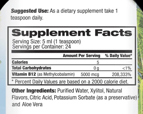- Now with 5000mcg (25,000% DV) of Sublingual Vitamin B12 as Methylcobalamin the natural form of B12.