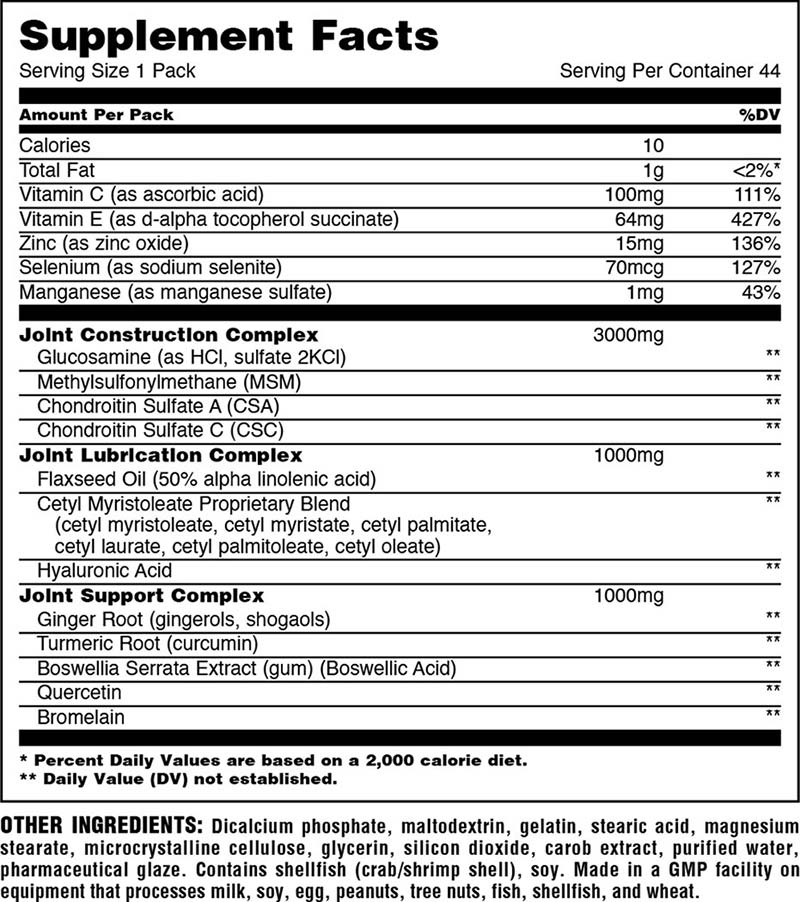 Notice: Individual results may vary. You should always consult with your physician before starting this product or any health-related program. Disclaimer: The product descriptions and the statements on this page are from manufacturers and/or distributors and have not been evaluated by VitaSprings or the FDA. These products are not intended to diagnose, treat, cure, or prevent any disease. VitaSprings does not imply any medical claims from the customer reviews on this Animal Flex, The Complete Joint Support Stack product on this website. © Universal Nutrition