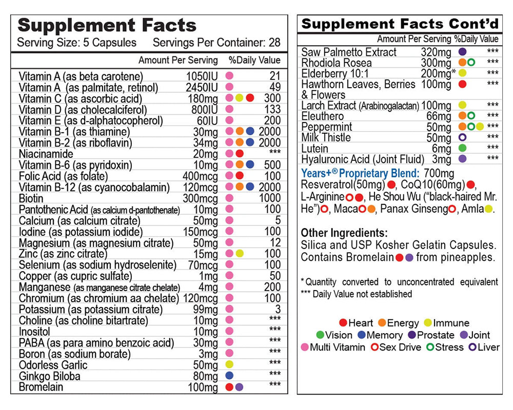 | | Years Plus Male Longevity Formula, Complete Multivitamin Product Description |